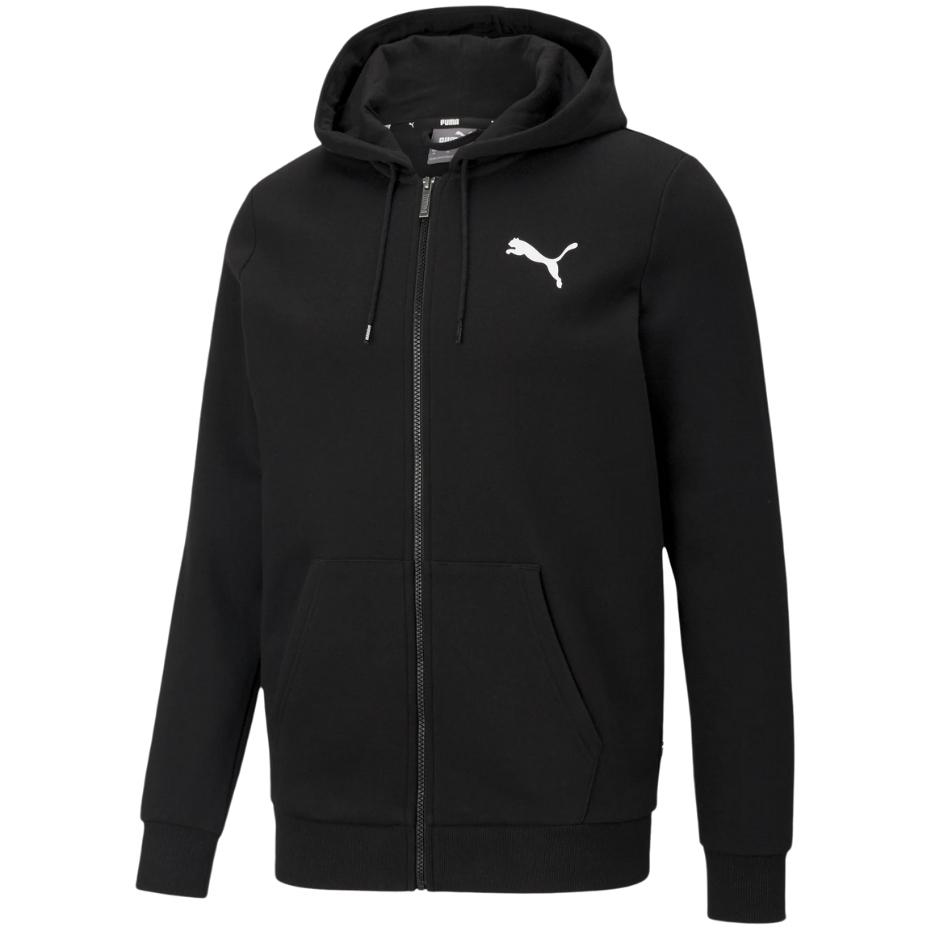 Męska rozpinana bluza z kapturem marki Puma w kolorze czarnym to element garderoby przeznaczony do codziennego użytku. Bluza ocieplana. Krój regularny. Ściągacz na końcu rękawów oraz na dole bluzy. Na piersi logo producenta. Kaptur ze ściągaczem.