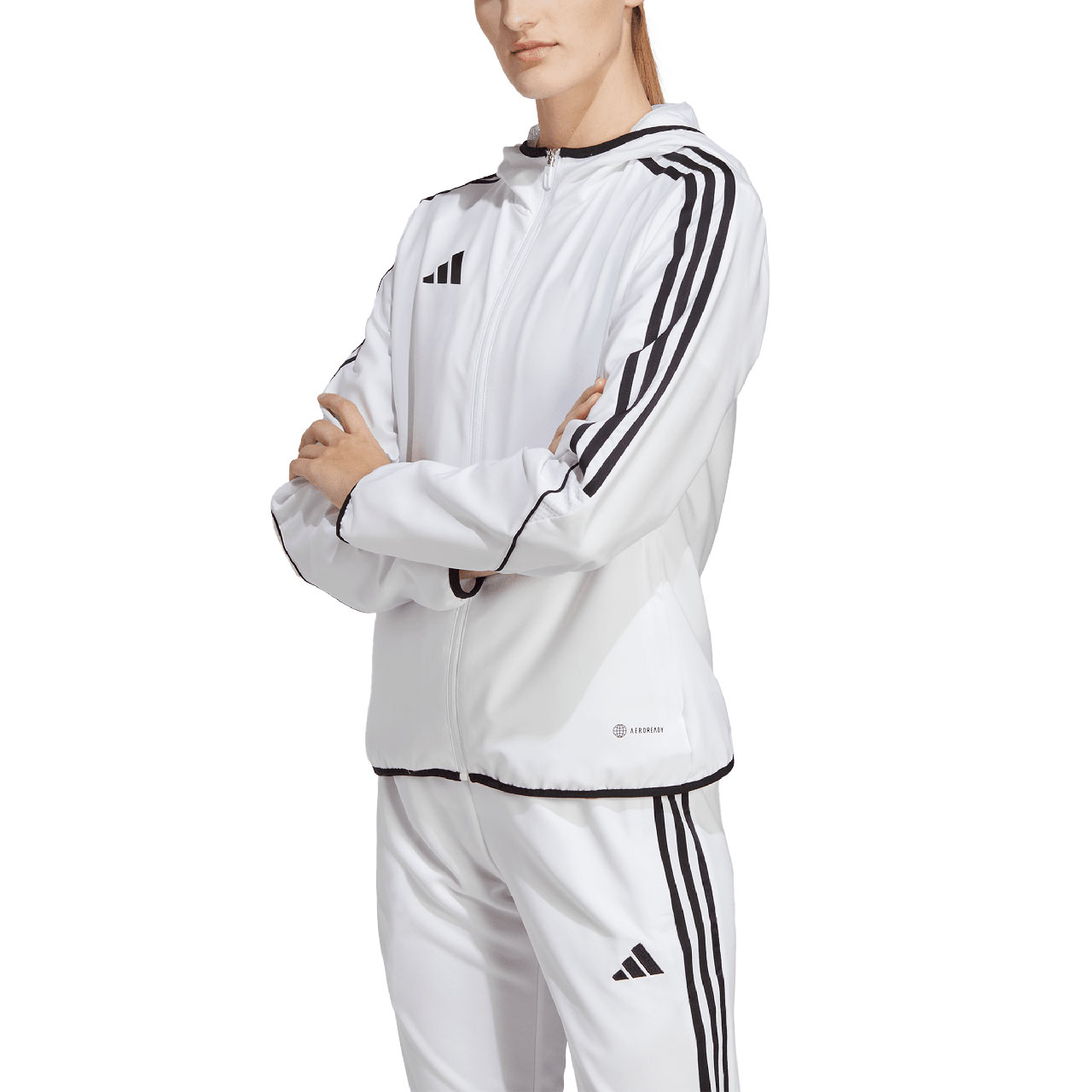 Damska wiatrówka adidas Tiro 23 sprawdzi się podczas treningów. Zamek na całej długości pozwala na szybkie ubieranie. Siateczkowa podszewka wspomaga proces wentylacji ciała. Technologia Aeroready zapewnia suchość w trakcie użytkowania produktu. Dwie kieszenie boczne na zamek. Kaptur bez regulacji. Hydrofobowe wykończenie materiału. Elastyczne lamówki przy mankietach i u dołu.