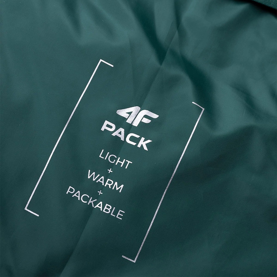 Wyjątkowo lekka męska kurtka 4F zadba o ciepły komfort zimą. Wypełnienie Primaloft Thermoplume® gwarantuje solidną ochronę przed chłodem i sprawia, że model utrzymuje temperaturę w czasie zmiennych warunków pogodowych. Hydrofobowa impregnacja materiału. Zintegrowany kaptur z regulacją i wysokim kołnierzem. Zamek YKK na całej długości z wewnętrzną listwą przeciwwiatrową. Boczne kieszenie na zamek. Możliwość złożenia kurtki i schowania jej do dedykowanej kieszeni. Lekko skośne pikowania. Model w kolorze zielonym.