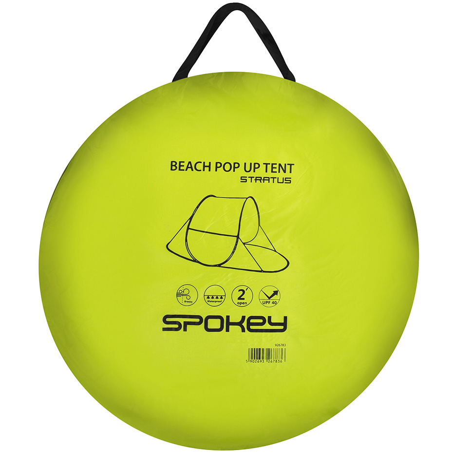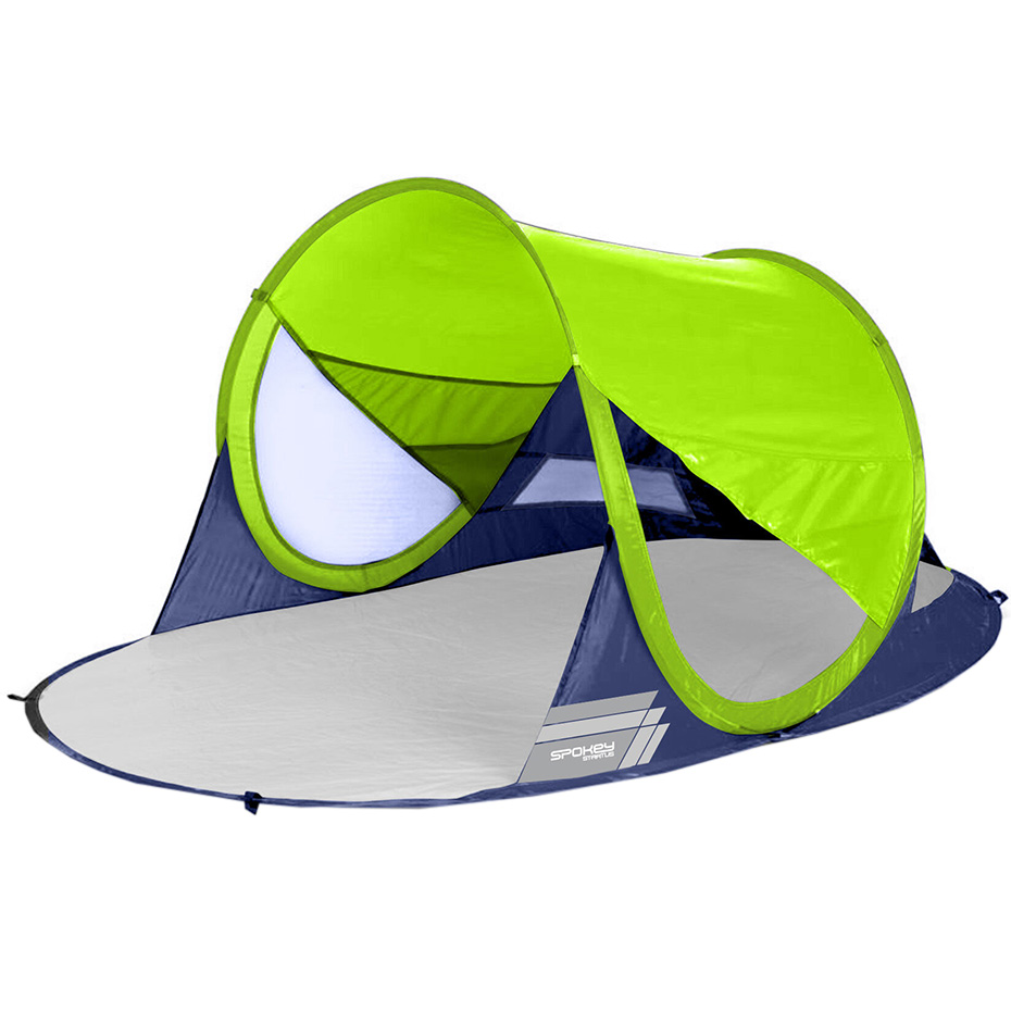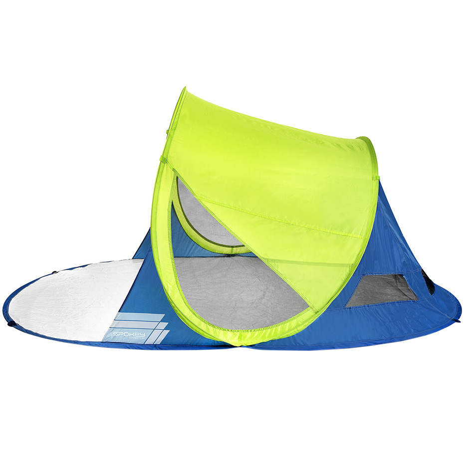 Namiot plażowy Spokey sprawdzi się na plaży, campingu, czy też w czasie górskiej wędrówki. Model powstał z myślą o ochronie przed wiatrem i silnymi promieniami słonecznymi. System szybkiego i automatycznego rozkładania. Po złożeniu zajmuje niewiele miejsca, dzięki czemu jest łatwy w transporcie i przechowywaniu. Wodoodporna podłoga. Ochrona przed promieniami UV 40.